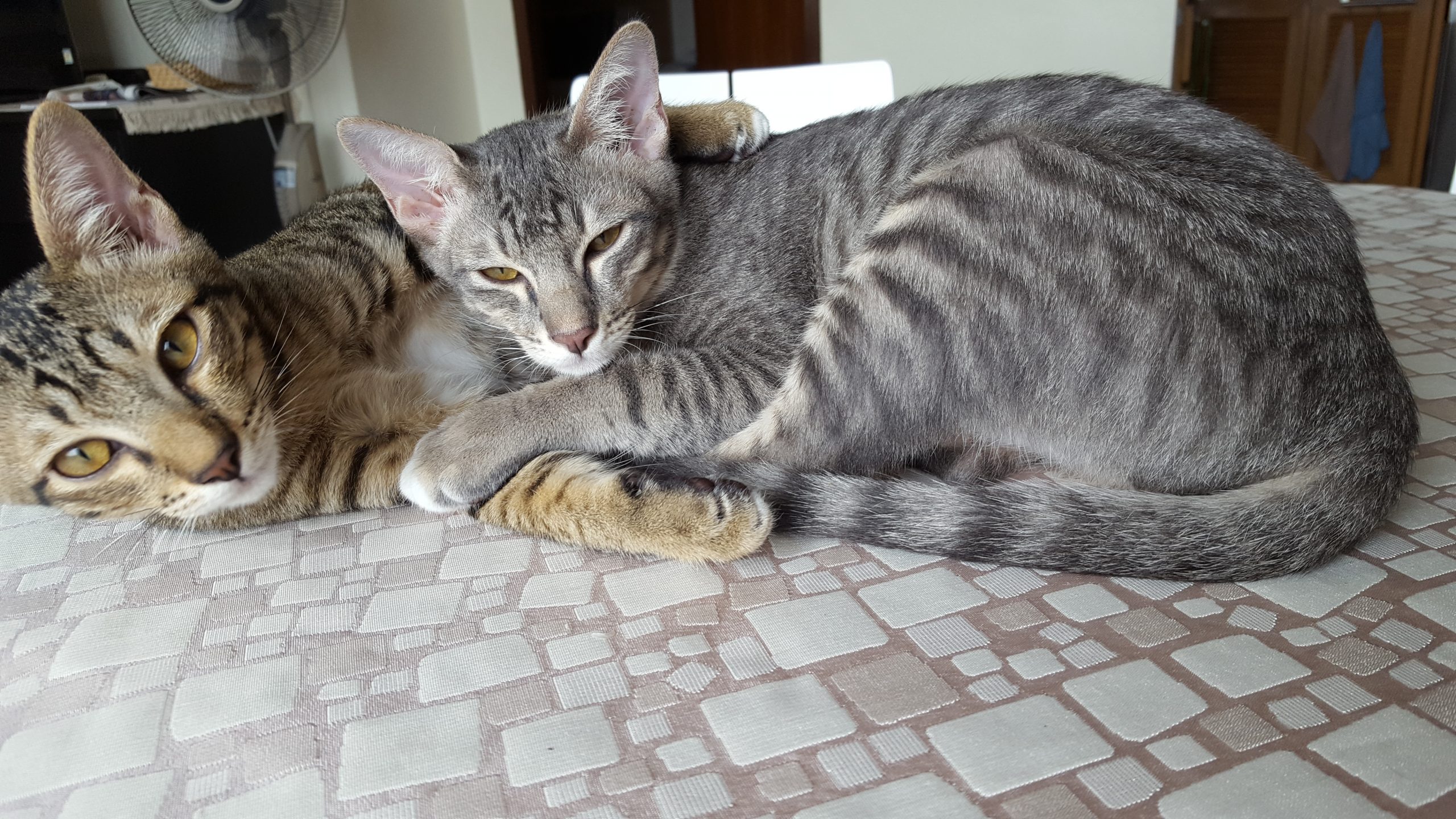 We have our children of our old age, 2 beautiful and affectionate boys (cats), Milo and Monty who give us great pleasure.